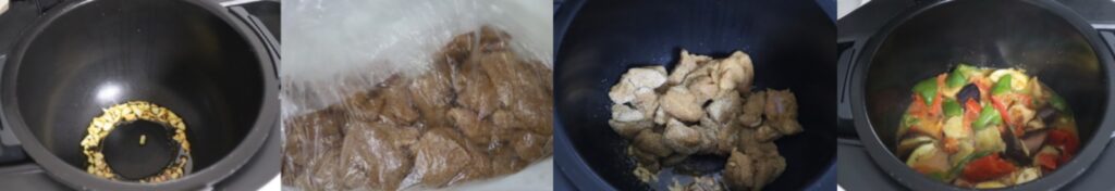・冷蔵庫に寝かせておいた鶏もも肉をスパイス類を含めて内鍋に加えて