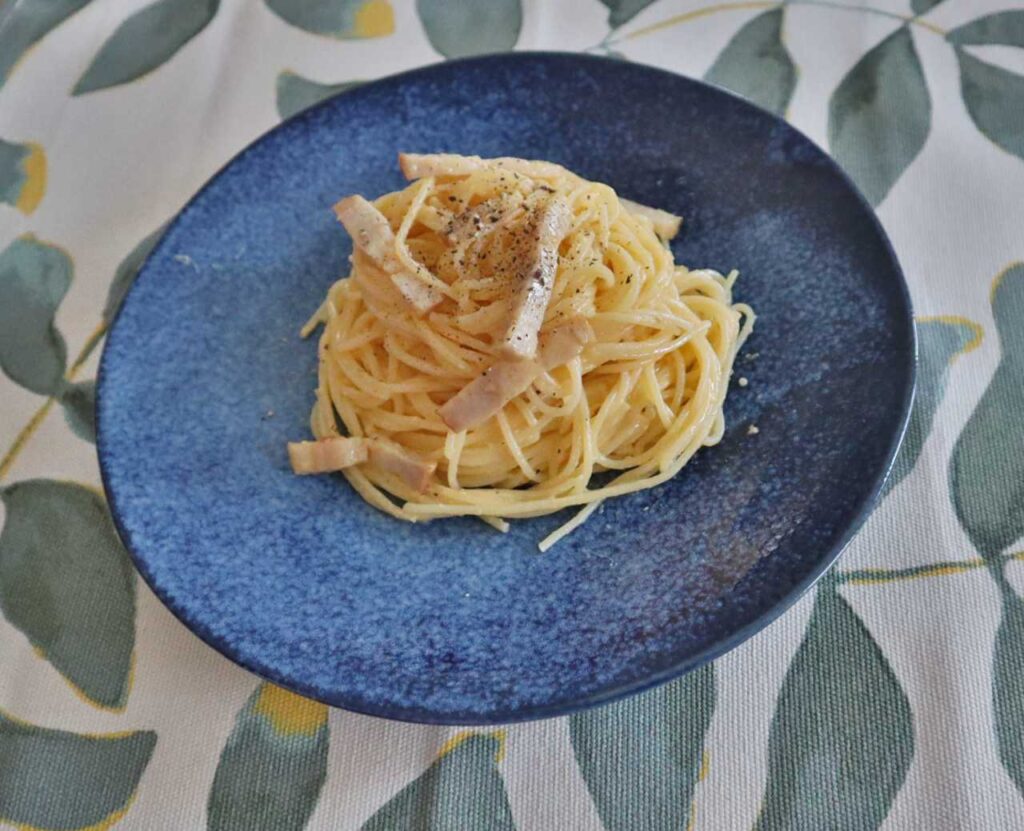 卵とベーコンのパスタを作ったので紹介します。カルボナーラに似てますが、よりシンプルでベーコンと卵の味が引き立つ一品です。