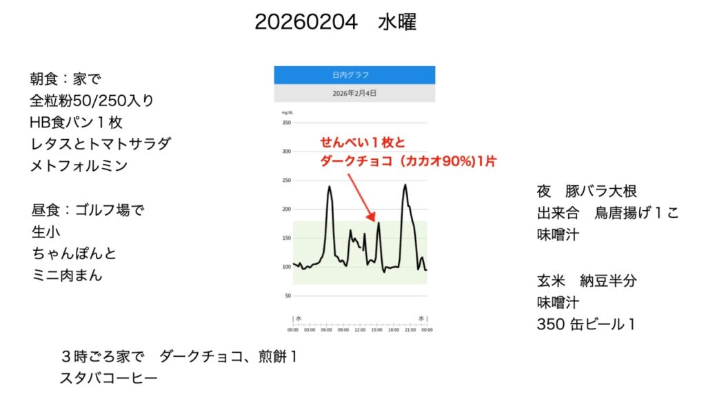 血糖値の上昇が比較的抑えられていました。