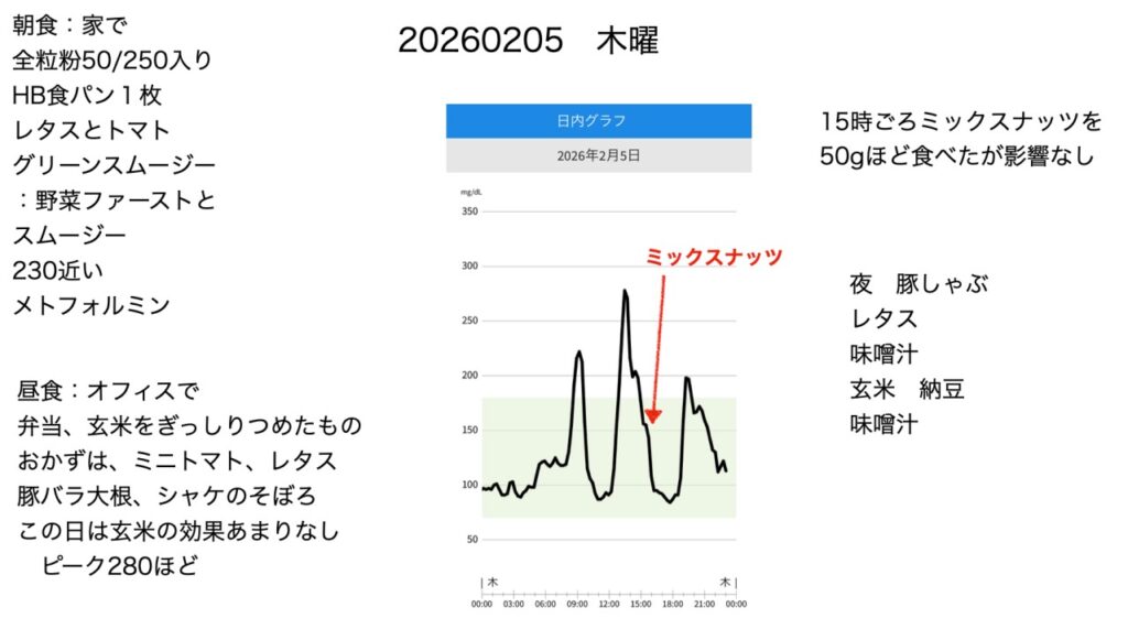 ただし、玄米でも量や食事構成次第で血糖値は上がることは読み取れます。
