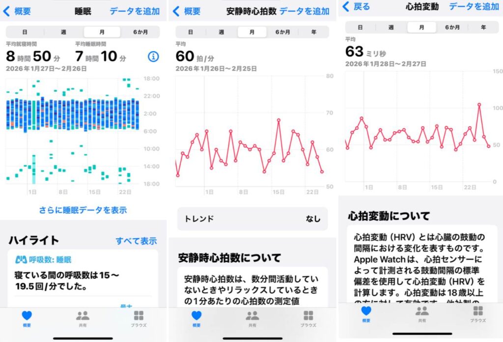 心拍変動(HRV)というのはiPhoneとApple Watchを使っていると、ヘルスケアデータの中に出てきます。