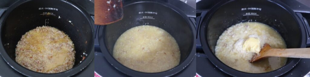※ブイヨン液は数回に分けて投入するのがクリーミーなコツ。
