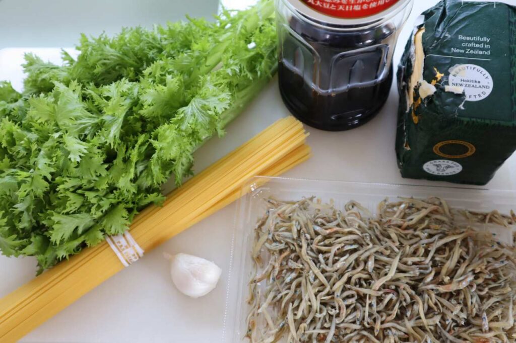 ◾️ちりめんじゃことわさび菜の和風ガーリックバター醤油パスタの材料
